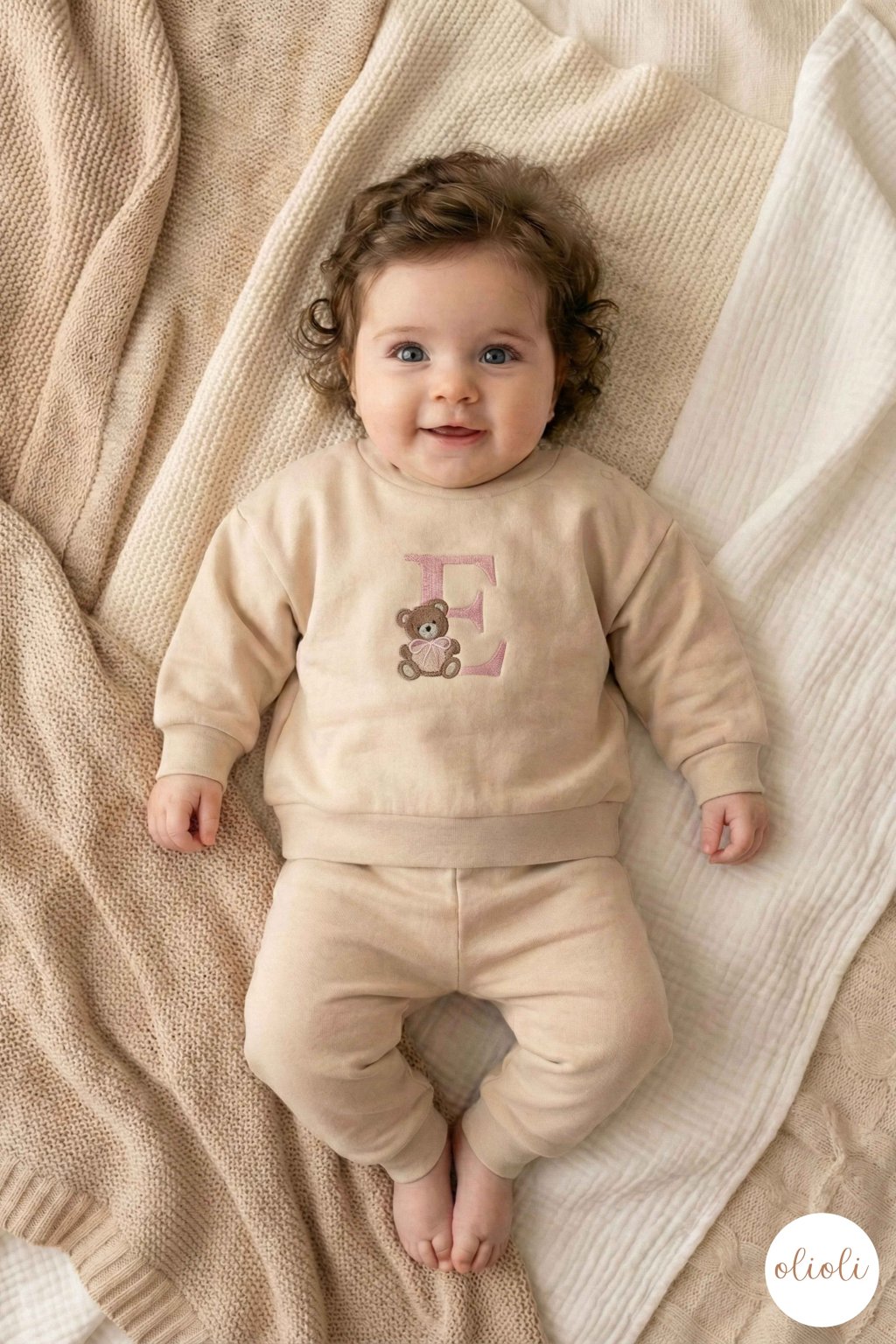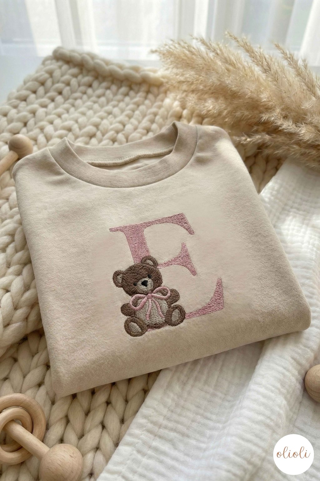 MIKINA s ružovým TEDDY písmenom - Light Beige