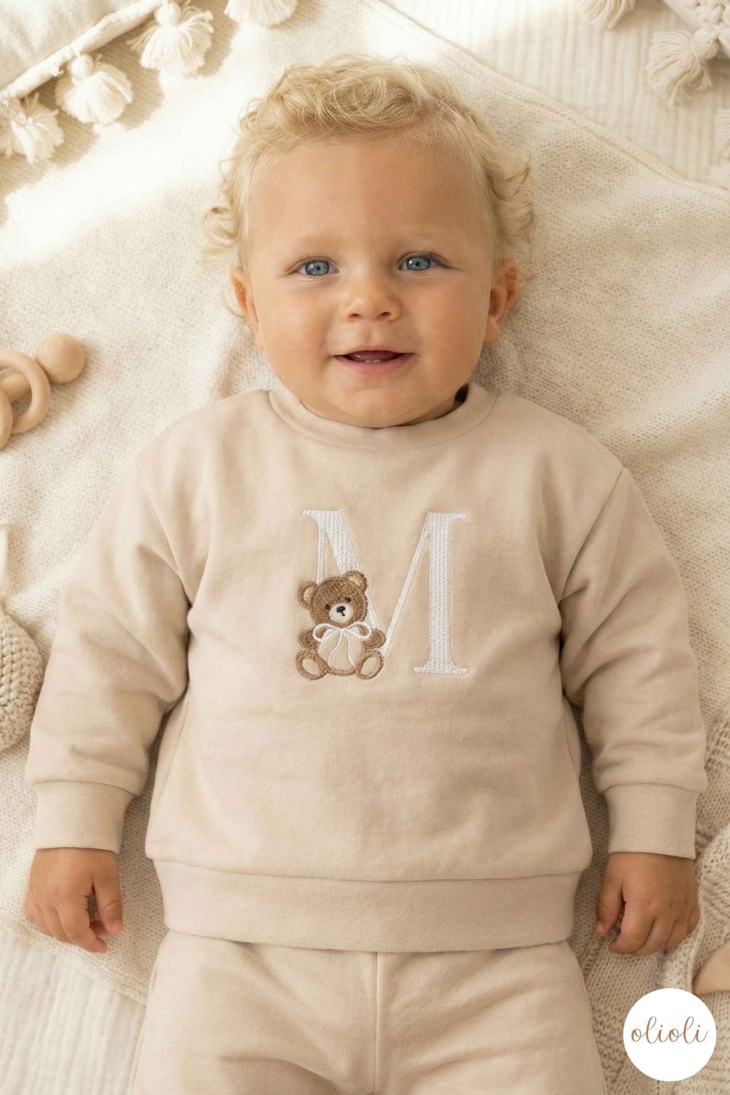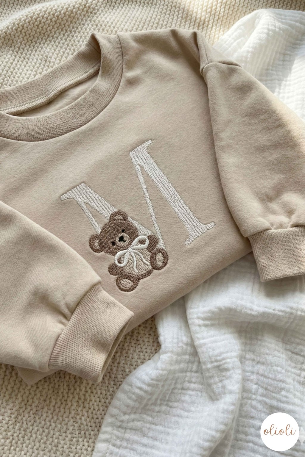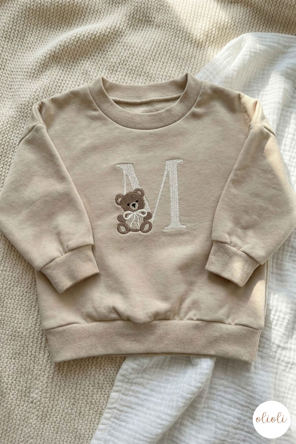 MIKINA s TEDDY písmenom - Light Beige