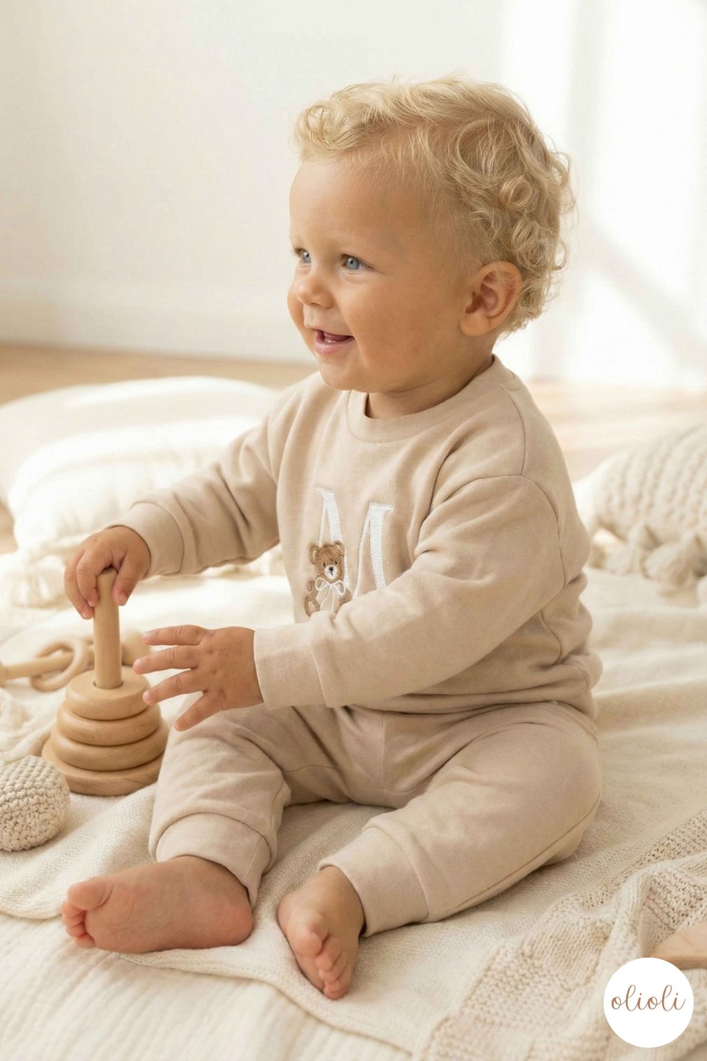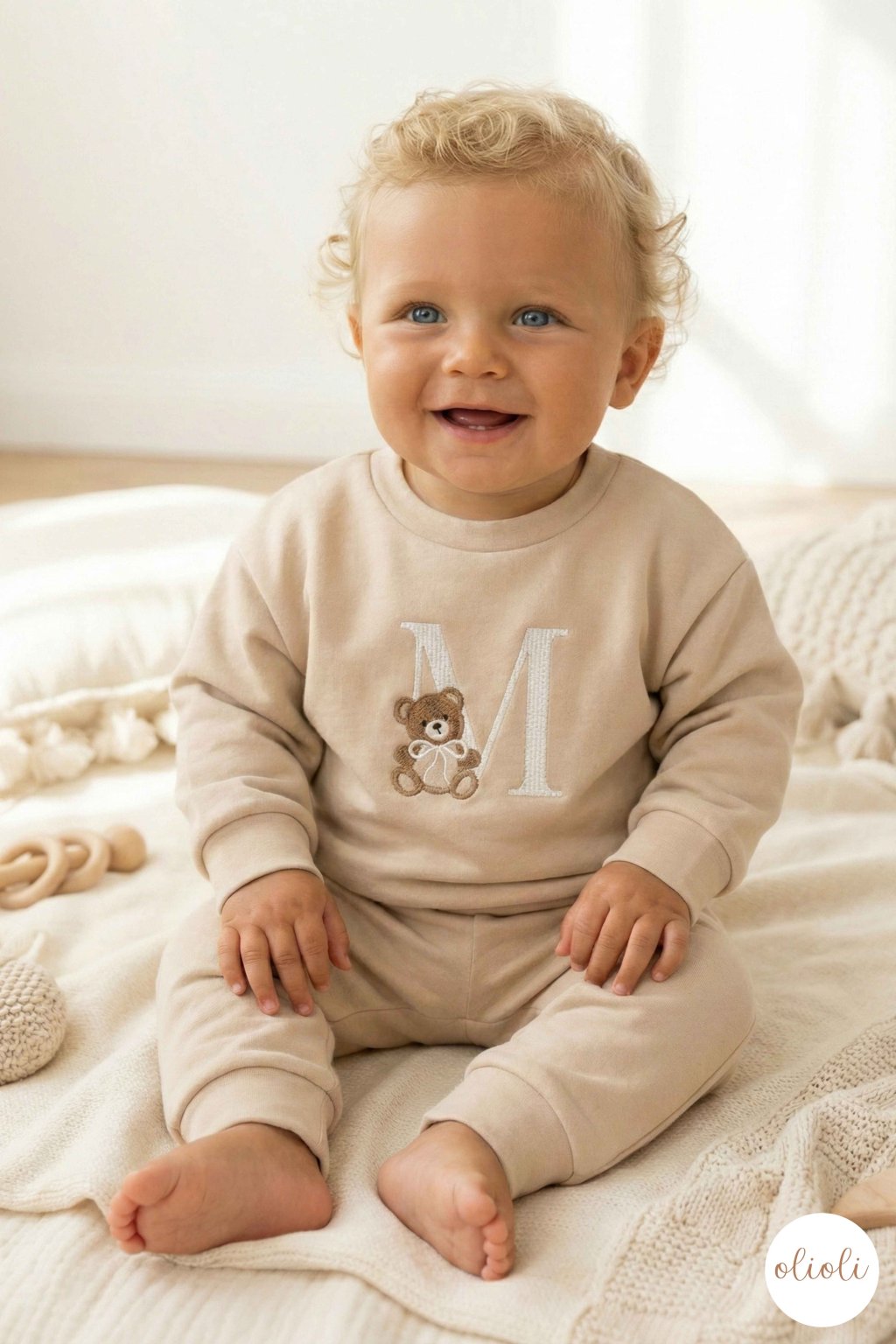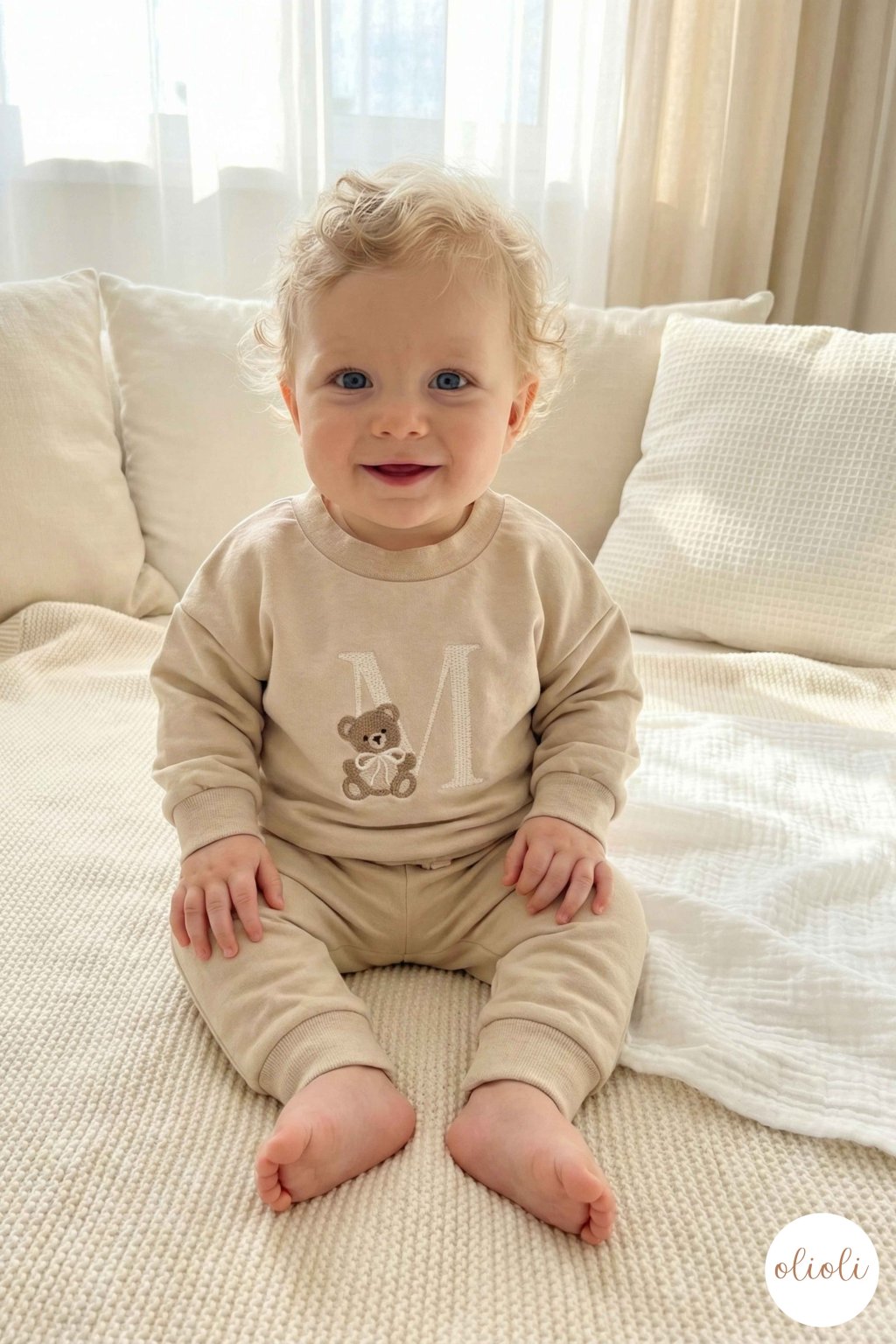 MIKINA s TEDDY písmenom - Light Beige