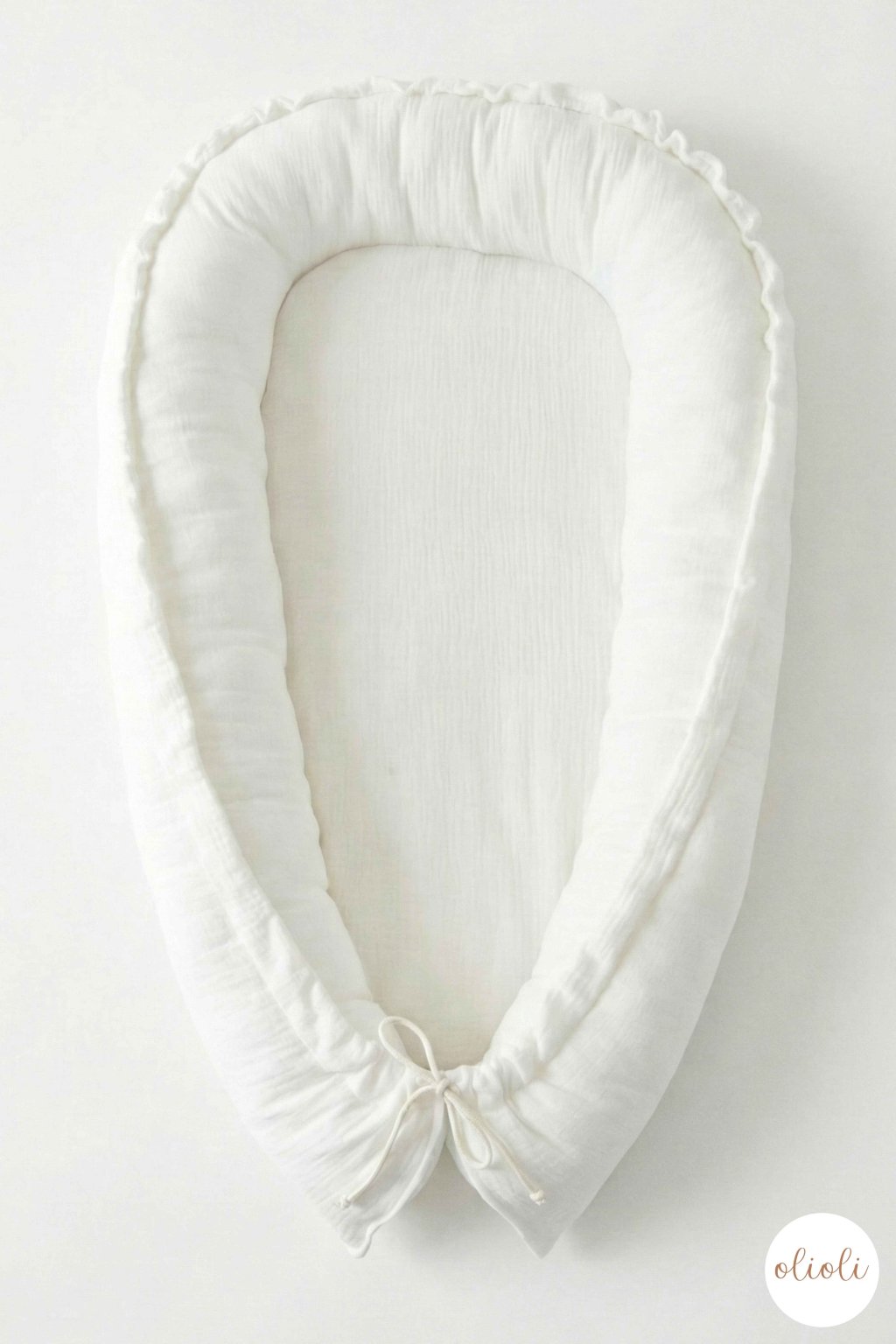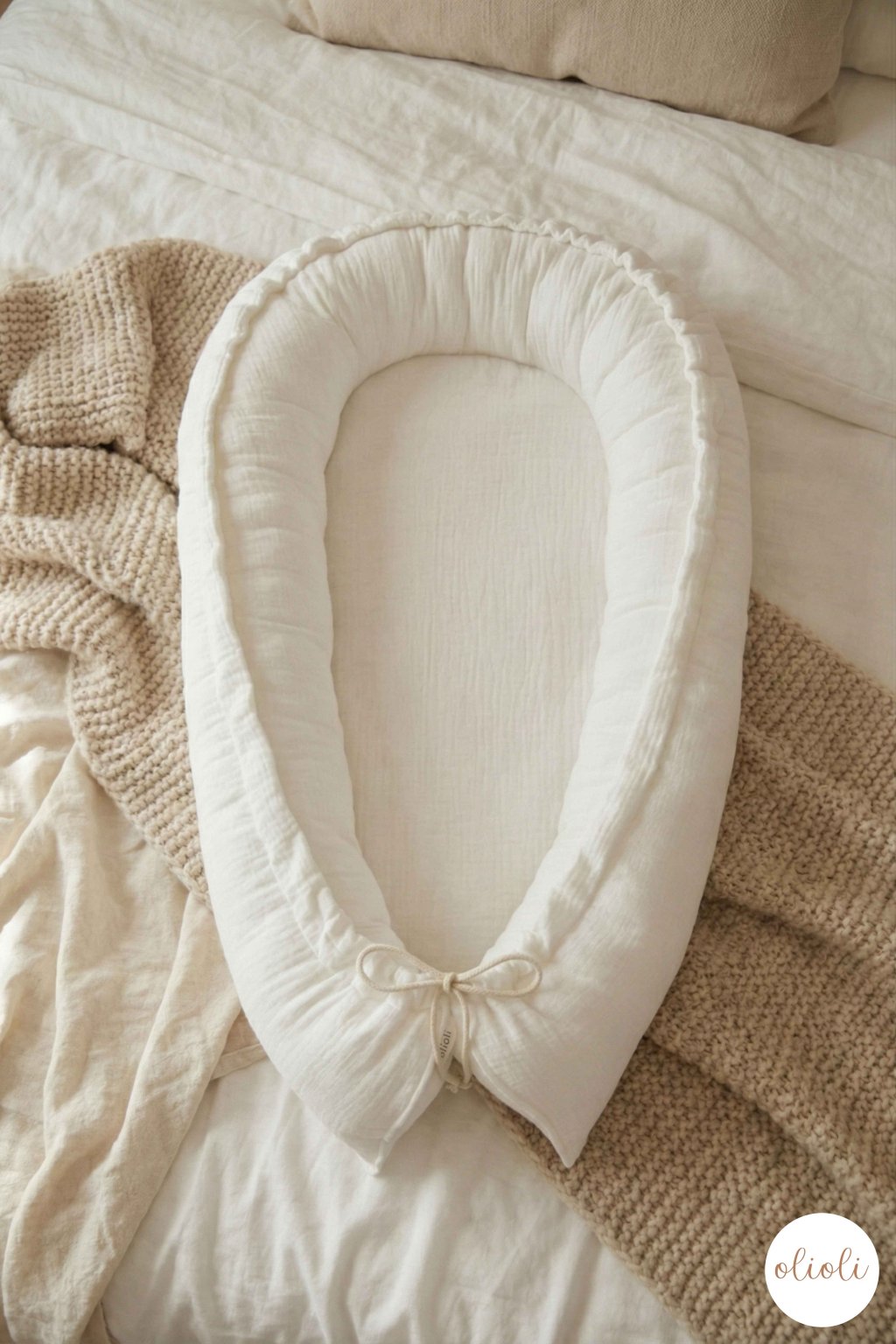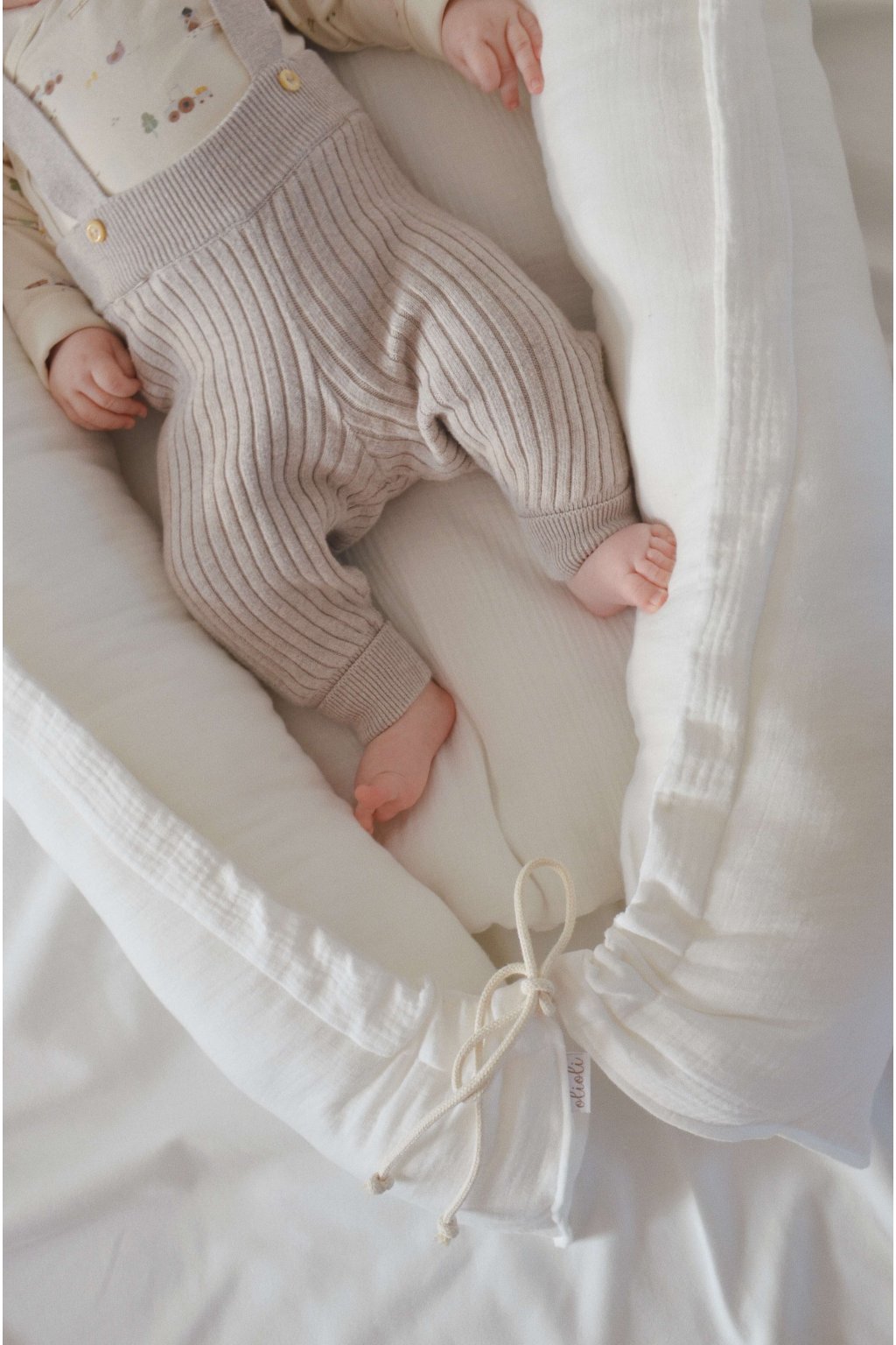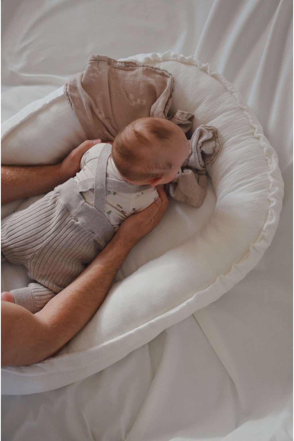 Mušelinové hniezdo poskytuje vášmu bábätku pocit bezpečia, blízkosti a pohodlia počas odpočinku či spánku. Vďaka svojmu tvaru a mäkkému okraju sa bábätko cíti útulne a chránené, podobne ako v maminom náručí.