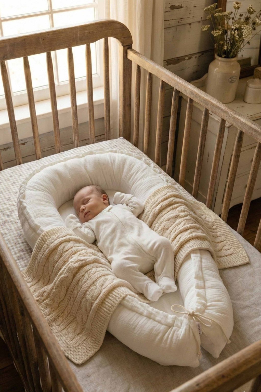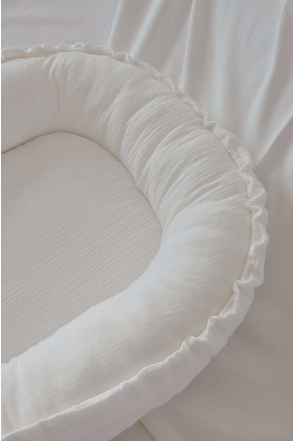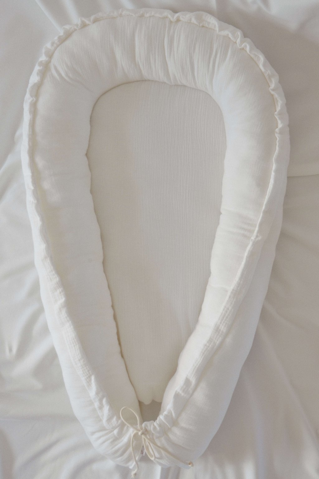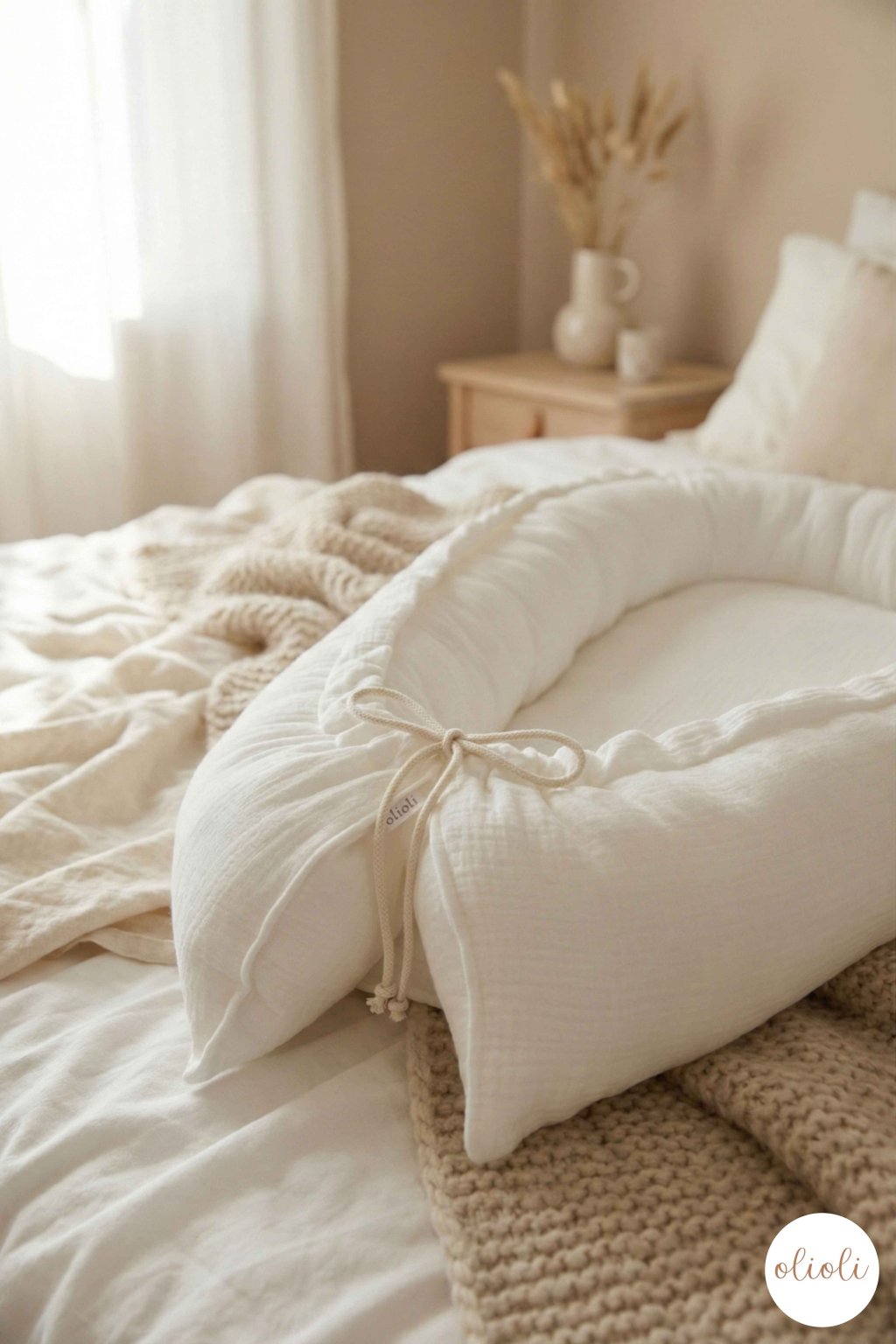 Mušelinové hniezdo poskytuje vášmu bábätku pocit bezpečia, blízkosti a pohodlia počas odpočinku či spánku. Vďaka svojmu tvaru a mäkkému okraju sa bábätko cíti útulne a chránené, podobne ako v maminom náručí.