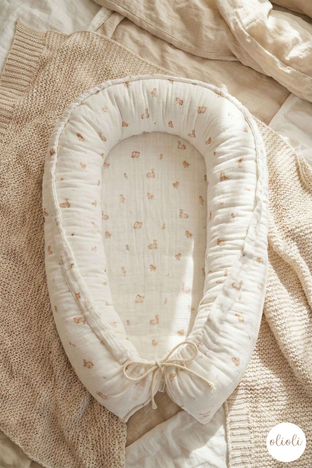 Hniezdo je všestranné — použijete ho v postieľke alebo pri spoločnom odpočinku. Je praktické a prenosné, takže ho môžete mať vždy pri sebe doma aj na cestách.