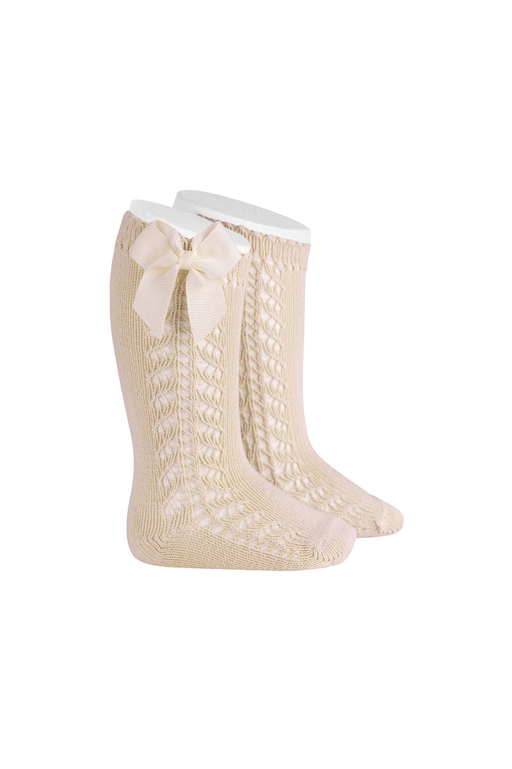 Podkolienky s mašľou s háčkovaným vzorom - Light Beige
