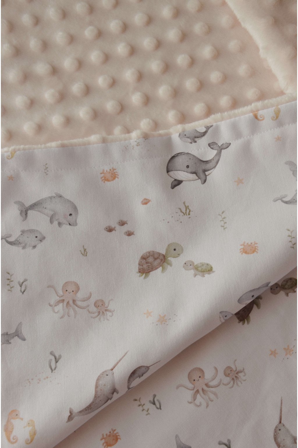 Minka dodáva deke mäkkosť a hrejivosť, zatiaľ čo bavlna prirodzenú priedušnosť a jemný dotyk. Spolu vytvárajú dokonale vyváženú kombináciu na celoročné používanie – do kočíka, postieľky, autosedačky aj na každodenné mojkanie.🤎